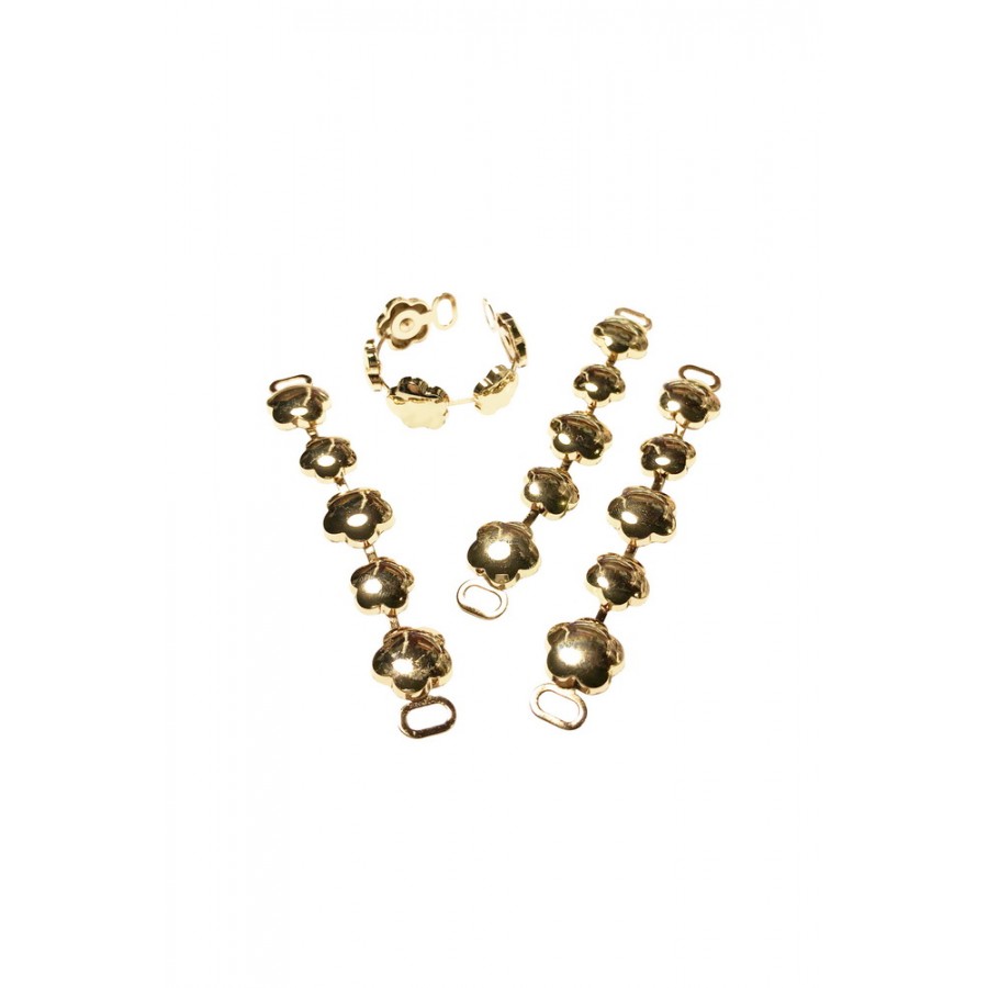 Díszítő fám csat 14 x 94 mm virágok. Arany színű. Könnyen hajlítható. Kiválóan alkalmas textilek és ajándéktárgyak készítésére. A csomag 4 darabot tartalmaz.