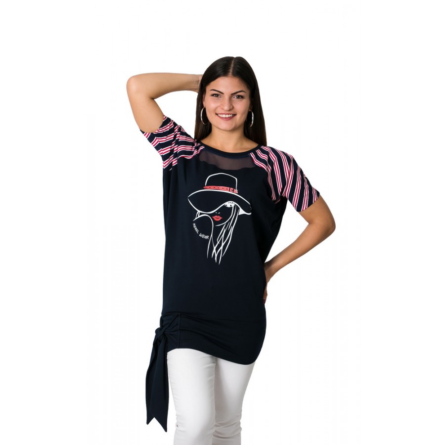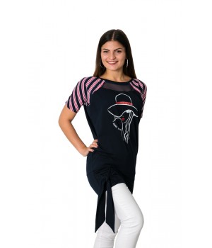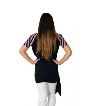Elasztikus pamutból készült, hónalj alatt bővebbre szabott mintás tunika. A tunika alja passzéval ellátott, ami tetszőleges módon megköthető. Méret választáskor a csípő méretnél javasoljuk a passzentos méret választását, mivel elasztikus anyagból készült, a felső rész bővebbre van kialakítva, így elegánsabb a tunika. Az anyag összetételét tekintve rendkívül strapabíró a ruházat. Kiválóan alkalmas a mindennapokra.