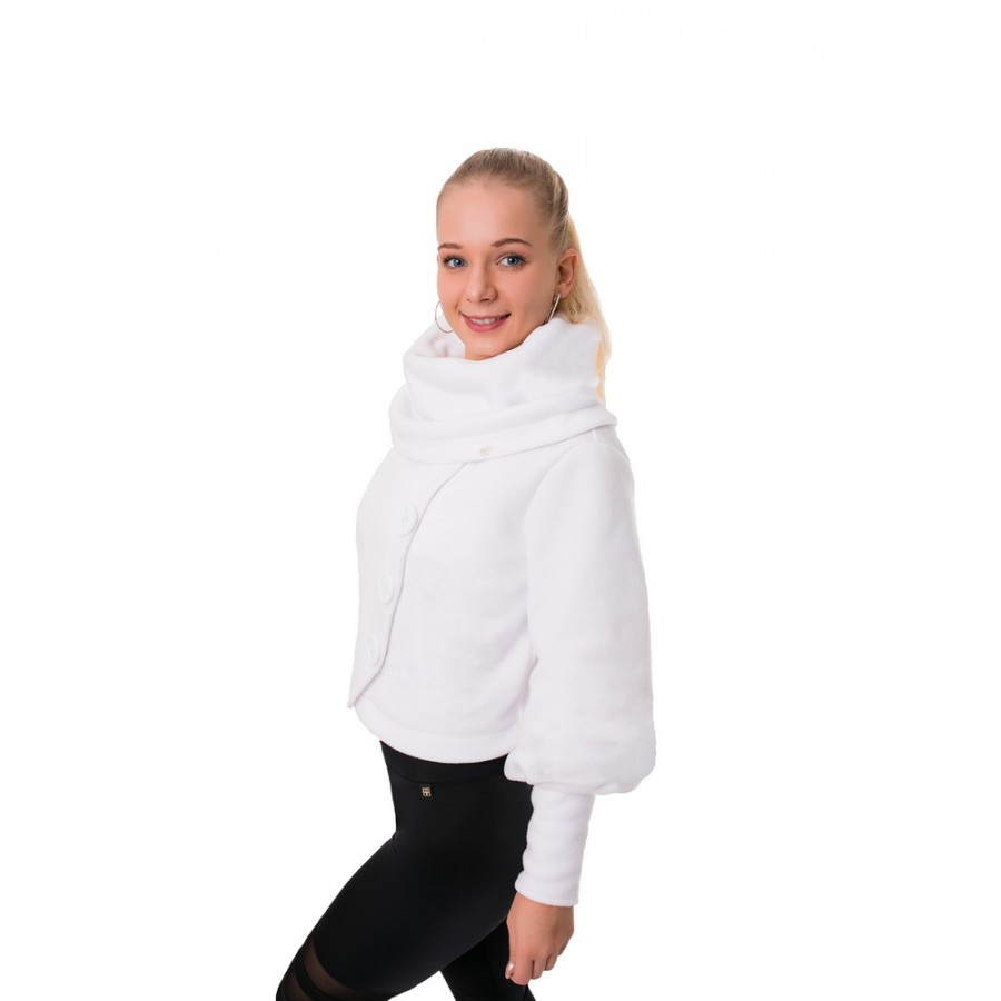 Kámzsanyakú rövid pulóver trendi szabásvonalakkal kialakítva. Eleje gombbal díszített, ujja a mandzsettánál puffos kialakítású. Puha tapintású, kényelmes viselet egész nap, legyen az egy szabadtéri rendezvény, vagy egy családi összejövetel. A hófehér pulóver garantáltan odavonzza a tekinteteket.
