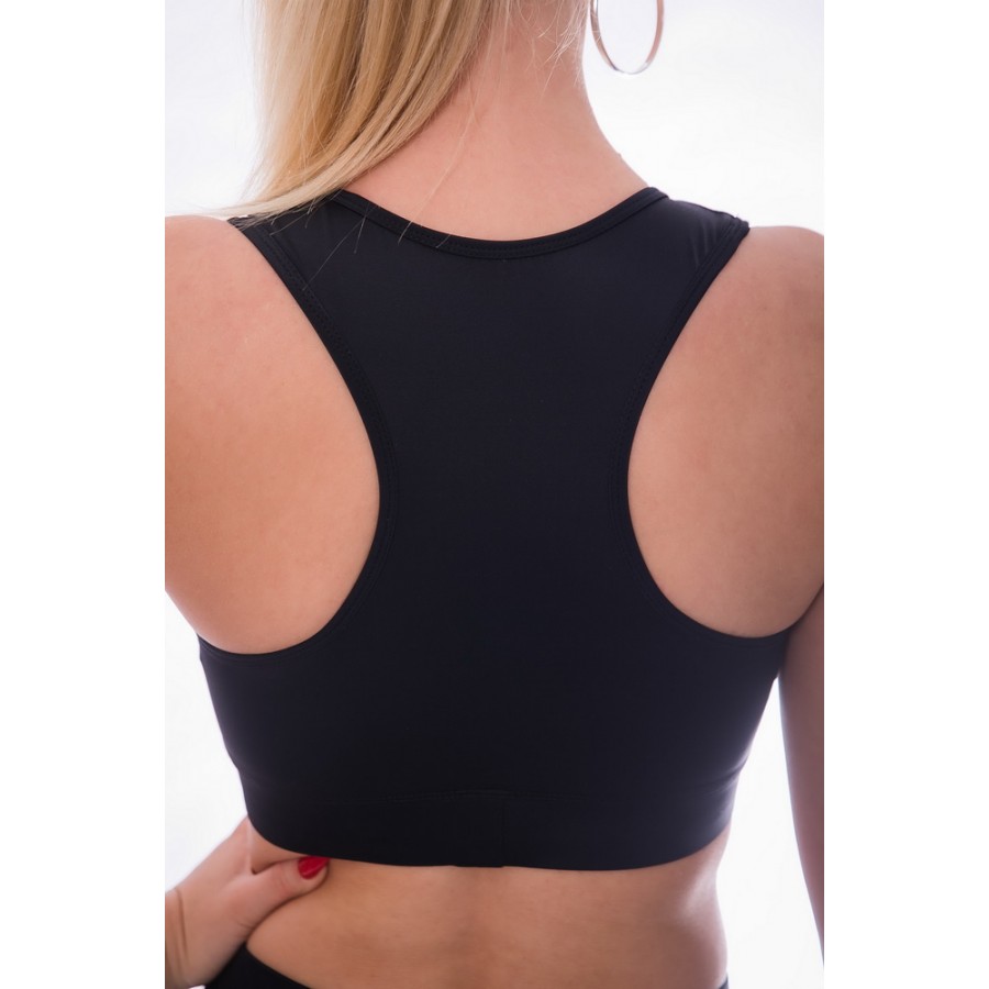 Fekete sport top neccel. Az eleje mellrész dupla anyagréteggel készült középen neccel díszítve.