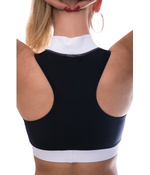 Fitness sport top, elasztikus anyagból, fekete, fehér színekkel. Az eleje mellrész dupla anyagréteggel készült, eleje-közepe neccel díszítve. Háta egyszínű fekete. A helyes méret választáshoz segítséget nyújt a táblázat. Vedd figyelembe, hogy a gumi 8-10 cm-rel legyen rövidebb, mint a mell alatti testkerület. Ez biztosítja, hogy mozgás közben ne mozduljon el. Ideális szabadtéri, edzőtermi sportoláshoz, vagy bármilyen szabadidős tevékenységhez.
